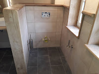 Wir warten auf den Installateur um WC und Armaturen zu montieren.....einige Stunden an Malerarbeiten und Fließarbeiten sind noch offen.